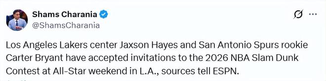 近年來,NBA扣籃大賽的光彩已黯淡不少。北京時間1月30日,據(jù)名記Shams報道,今年四位參賽選手名單中的兩人已經(jīng)確定,他們分別是湖人中鋒海斯和馬刺側(cè)翼卡特-布萊恩特。此前,三屆扣籃王麥克朗已宣布不會參賽。