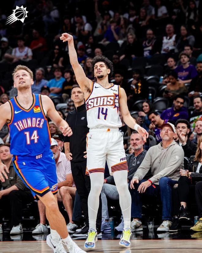 雷霆上一場客場119-110戰(zhàn)勝湖人,太陽上一場主場120-111戰(zhàn)勝獨行俠,賽季前三次交鋒雷霆2勝1負(fù)處于上風(fēng)。本場雷霆缺少亞歷山大與米切爾,太陽缺少阿倫、布克、格林。面對缺少雙核的殘陣太陽對決,雷霆也缺少亞歷山大,但依然是占據(jù)絕對實力優(yōu)勢。首節(jié)前5分鐘雷霆僅16-14領(lǐng)先,但雷霆逐步擴(kuò)大23-18領(lǐng)先,太陽追到差3分。雷霆一波14-5攻勢碾壓太陽擴(kuò)大兩位數(shù)領(lǐng)先優(yōu)勢,首節(jié)比賽結(jié)束雷霆37-25領(lǐng)先太陽12分。