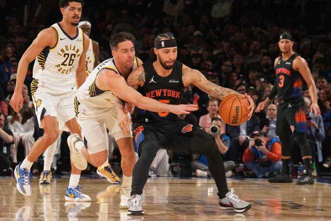 進(jìn)入第四節(jié)比賽,唐斯率先三分命中,步行者追到96-96,雙方隨后持續(xù)交替領(lǐng)先纏斗。尼克斯逐步以104-107落后,雙方繼續(xù)纏斗至110-110,尼克斯之后114-113領(lǐng)先,內(nèi)史密斯連得4分打停尼克斯。布倫森中投得分,內(nèi)姆哈德上籃回敬,布倫森兩罰一中,西亞卡姆拋射擴(kuò)大4分優(yōu)勢。布倫森2+1續(xù)命,雙方接連打鐵,西亞卡姆中投擴(kuò)大3分優(yōu)勢,尼克斯請求暫停。布倫森三分不中,步行者碰出界尼克斯繼續(xù)獲得球權(quán),布里奇斯被戰(zhàn)術(shù)犯規(guī)兩罰全中,西亞卡姆被犯規(guī)兩罰一中。沙梅特絕殺三分不中,唐斯補(bǔ)籃造犯規(guī)兩罰全中扳平,雙方常規(guī)時間維持124-124。